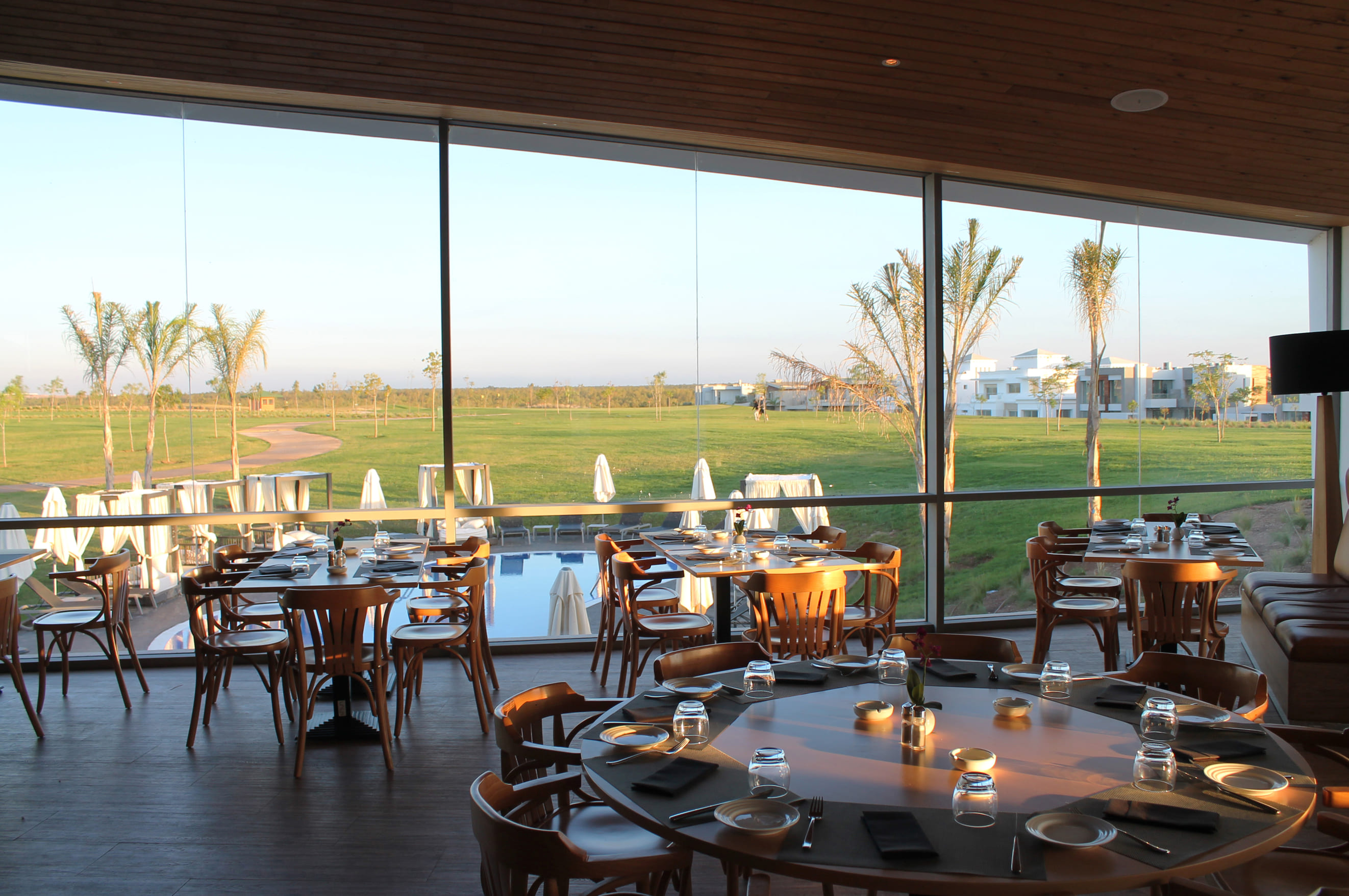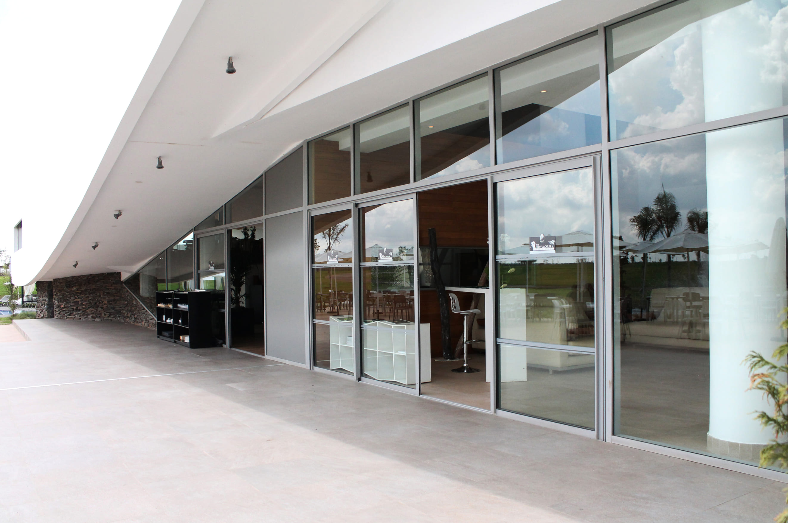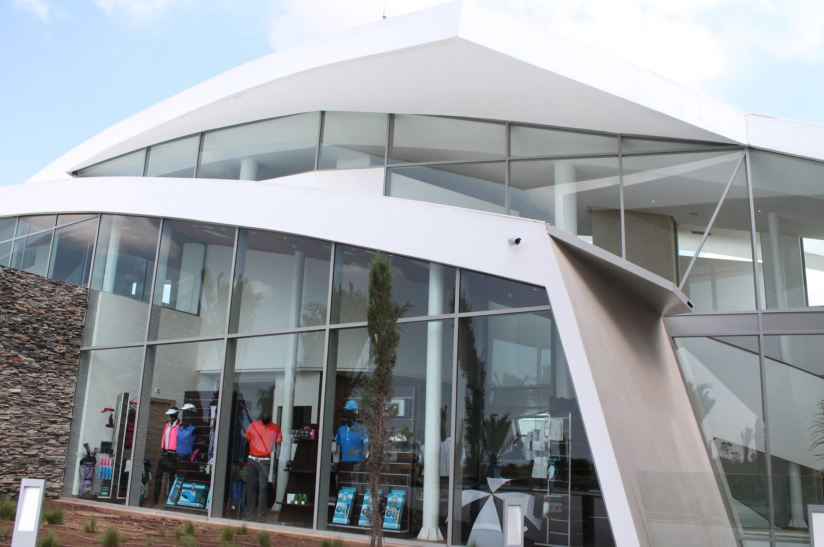 Niché en plein cœur de la nature et avec un style résolument contemporain, le mur rideau 1100 capot et serreur de la gamme Sepalumic répond parfaitement au concept architectural du Club House Prestigia Golf de Bouskoura.
